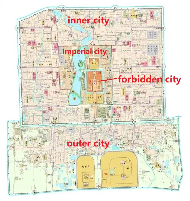 outer city, inner city, imperial city, forbidden city